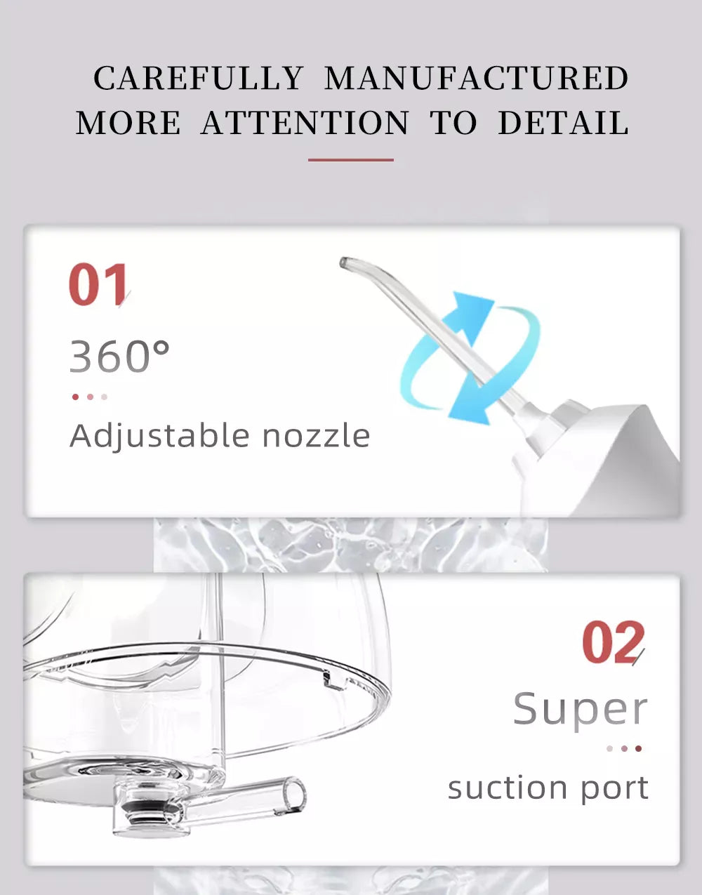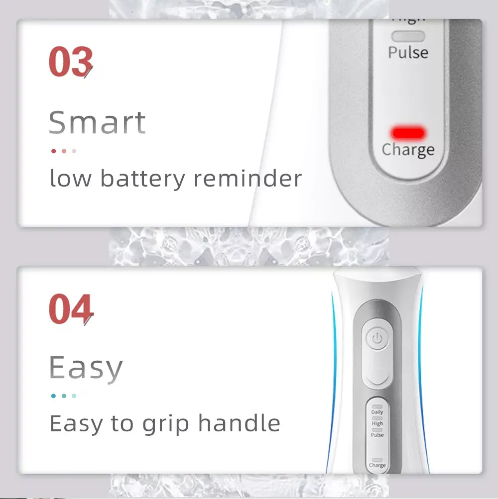 • Waterproof Design: With an IPX7 waterproof rating, this dental flosser is easy to clean and maintain, ensuring longevity and optimal performance.