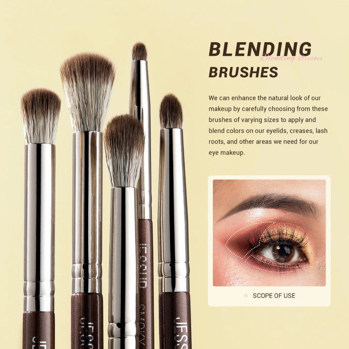 • Includes blending, eyeshadow, eyeliner, concealer, and eyebrow brushes.