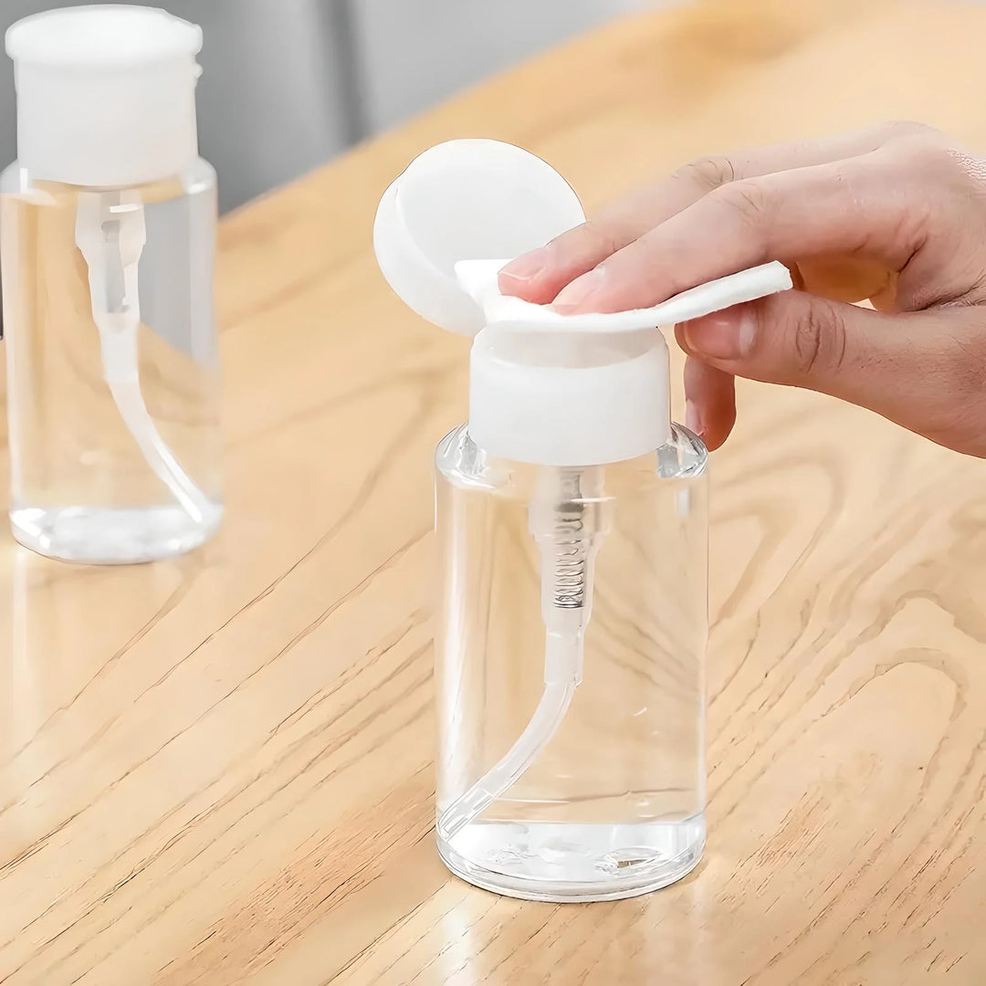 Transform your beauty routine with our Refillable Push-Top Pump Bottles, designed for easy and efficient use. These versatile bottles are perfect for dispensing nail polish remover, makeup remover, and other liquid beauty products. Available in three sizes—100ml, 150ml, and 200ml—these bottles are a must-have for any beauty enthusiast looking for a practical and stylish solution for their beauty essentials.