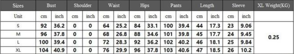 | SIZE | US / CAN | BUST | WAIST | HIPS |
