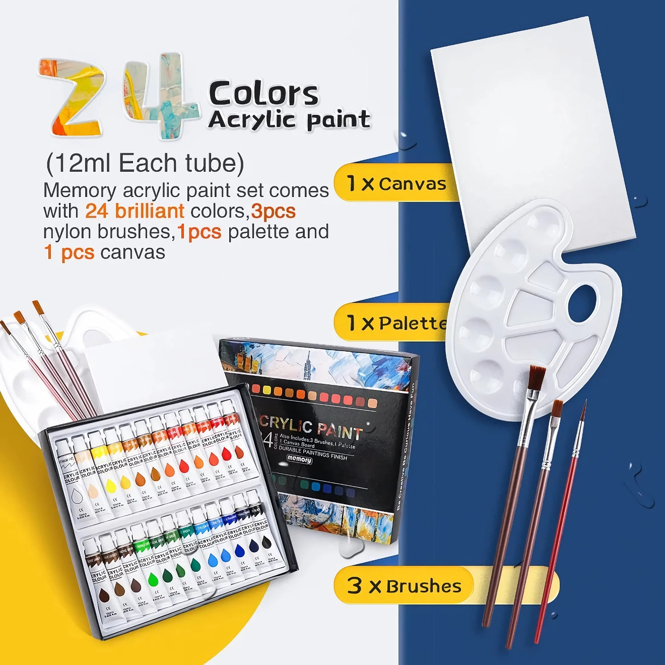 What makes our acrylic paints special? Each color is carefully formulated to ensure maximum pigmentation and excellent coverage. You can create stunning artwork with just a few brush strokes. The included brush set offers a variety of sizes, making it easy to add detail and texture to your creations. Plus, the non-toxic formula ensures safety for artists of all ages, so everyone can enjoy the creative process. This paint set is perfect for various occasions, whether you’re working on personal projects, school assignments, or professional art pieces. It’s a fantastic choice for both beginners looking to explore their artistic side and experienced artists seeking to expand their palette. The paints dry quickly, allowing you to layer and build up your artwork without long waiting times.Start Your Artistic Journey Today!