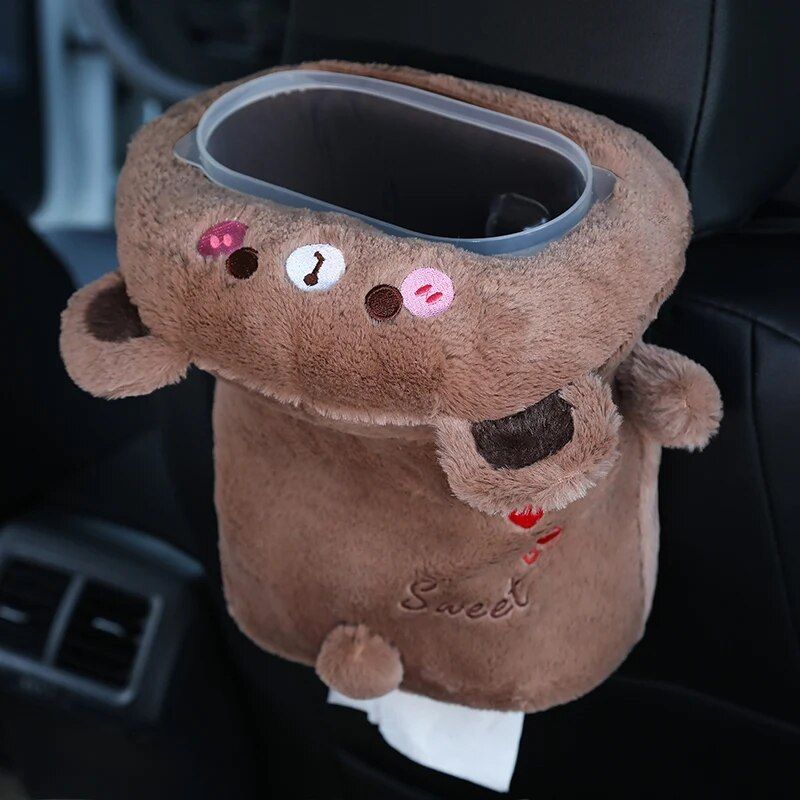 2-in-1 Car Tissue Box & Trash Bin with Cartoon Animal Design