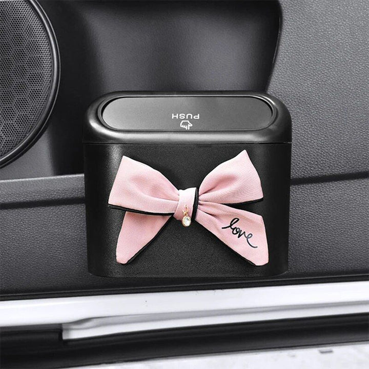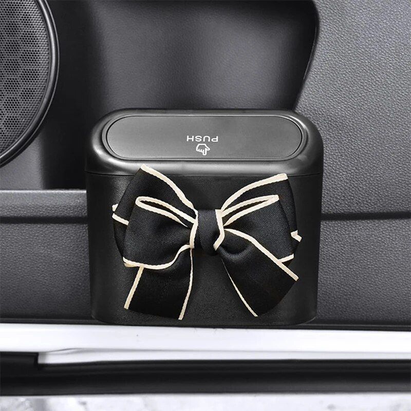 Wave goodbye to scattered trash and welcome a tidier, more organized vehicle interior. Introducing our Bowknot Car Hanging Trash Bin with Press-Type Lid – a fusion of style and functionality, designed specifically for the modern-day driver who values cleanliness and elegance.Key Features