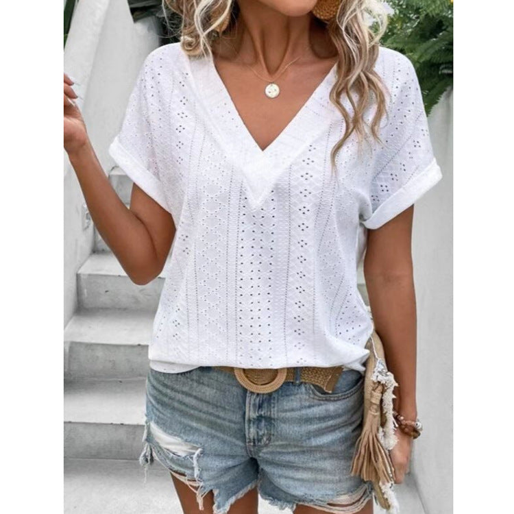 Women's V-neck Loose Top Short-sleeved T-shirt
