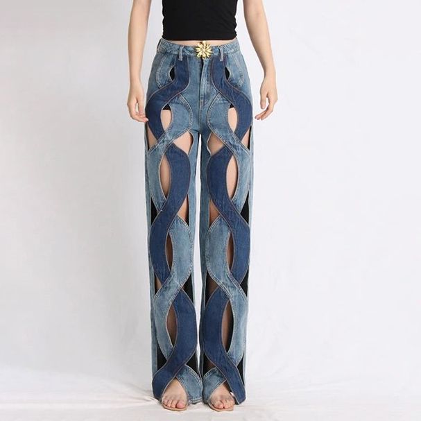 These jeans stand out with their unique hole and floral decoration design, setting you apart in any crowd. Whether it's a casual day out or a semi-formal event, these jeans can be dressed up or down to suit any occasion. Their high street style makes them a perfect choice for the fashion-conscious middle-aged woman.
