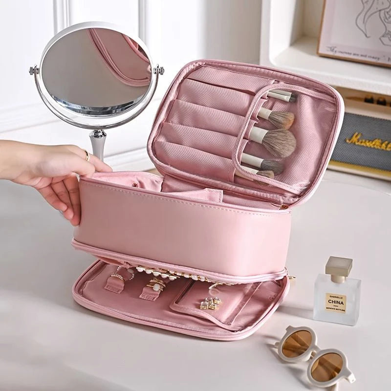 Meet the perfect travel companion for all your beauty and jewelry needs. Our 2-in-1 Makeup Brushes Organizer combines style with functionality, offering a versatile solution for organizing your cosmetics and accessories. Whether you’re heading on a weekend getaway or a long vacation, this waterproof cosmetic bag ensures that everything you need is neatly stored and easily accessible.