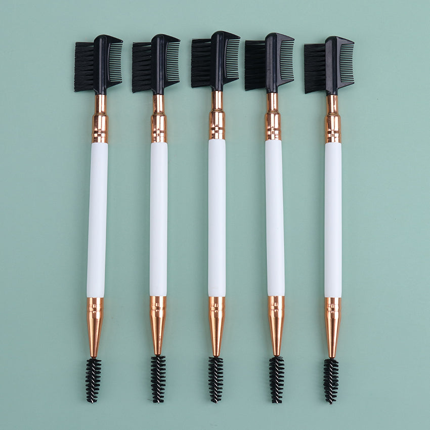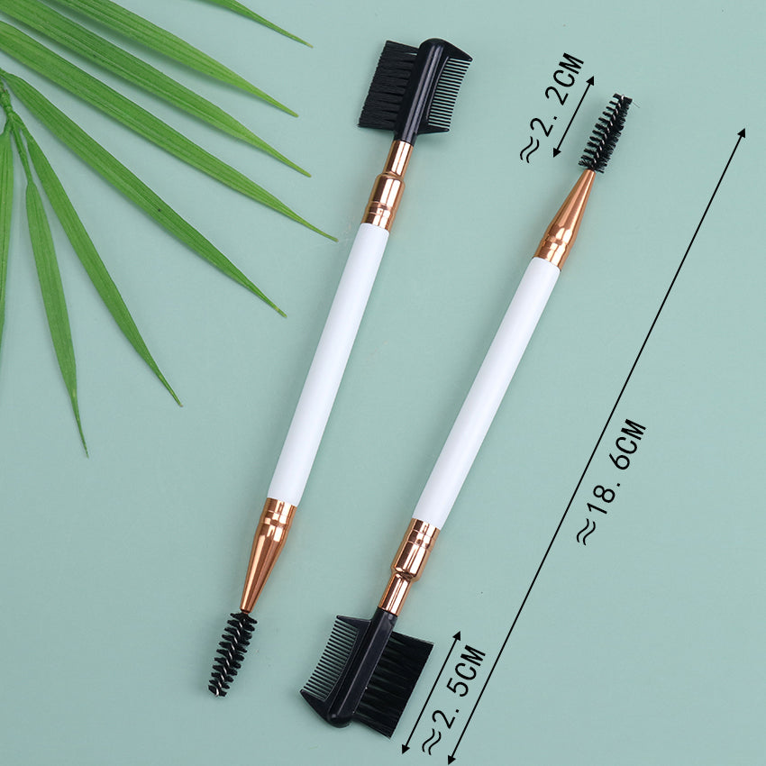 Crafted with a sturdy wooden handle and nylon fiber bristles, this brush ensures durability and effective application. The double-ended design features a comb on one end and a spiral brush on the other, making it perfect for multiple uses. Whether you need to apply makeup or simply groom your brows and lashes, this tool has got you covered.Key Features