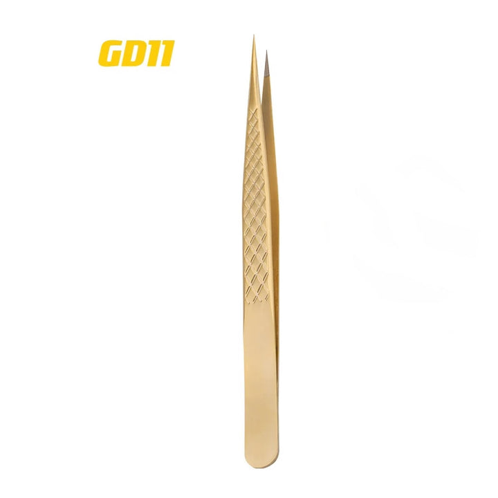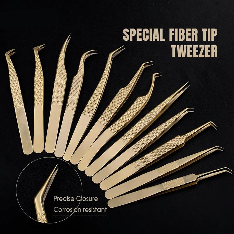 Achieve flawless eyelash extensions with our High Precision Golden Eyelash Extension Tweezers with Fiber Tips. These top-of-the-line tweezers are designed for precision and ease, making them an essential tool for both professional lash artists and beauty enthusiasts. The elegant golden stainless steel design adds a touch of luxury to your beauty toolkit, ensuring that you work with style and precision.