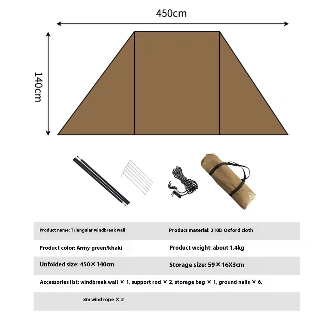 Windbreak wall * 1pc+support pole * 4pc+storage bag * 1pc+ground nail * 8pc+8m wind rope * 4pc; Windbreak wall * 1pc+support pole * 2pc+storage bag * 1pc+ground nail * 6pc+8m wind rope * 2pc; Windbreak wall * 1pc+support pole * 1pc+storage bag * 1pc+ground nail * 8pc+3m wind rope * 4pc;