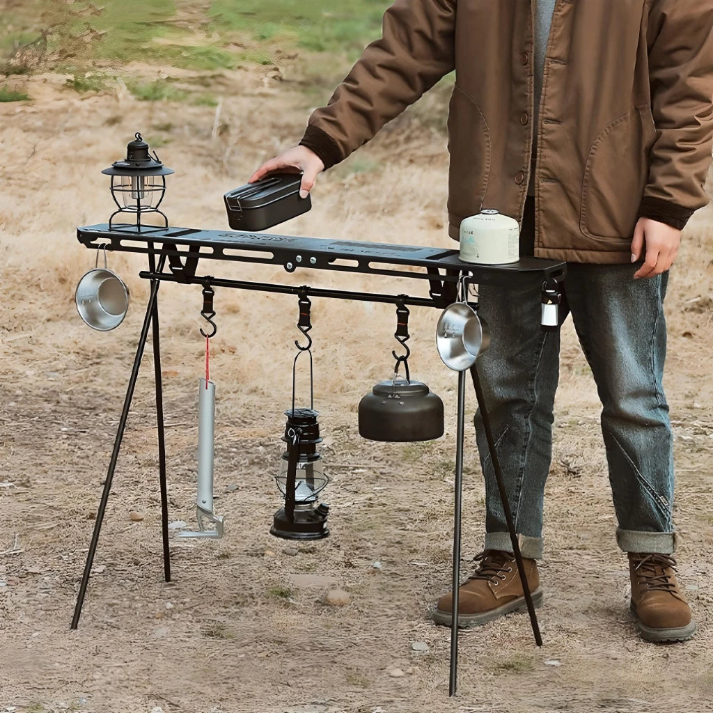 The Outdoor Triangular Storage Rack stands out due to its unique combination of durability, portability, and functionality. The iron construction ensures it can withstand the elements, while the foldable design allows for easy transport and storage. The triangular shape provides excellent stability, making it a reliable surface for your tableware, cooking tools, and other camping gear. Additionally, the included storage bag makes it even more convenient to carry and store.Why You Should Get the Outdoor Triangular Storage Rack