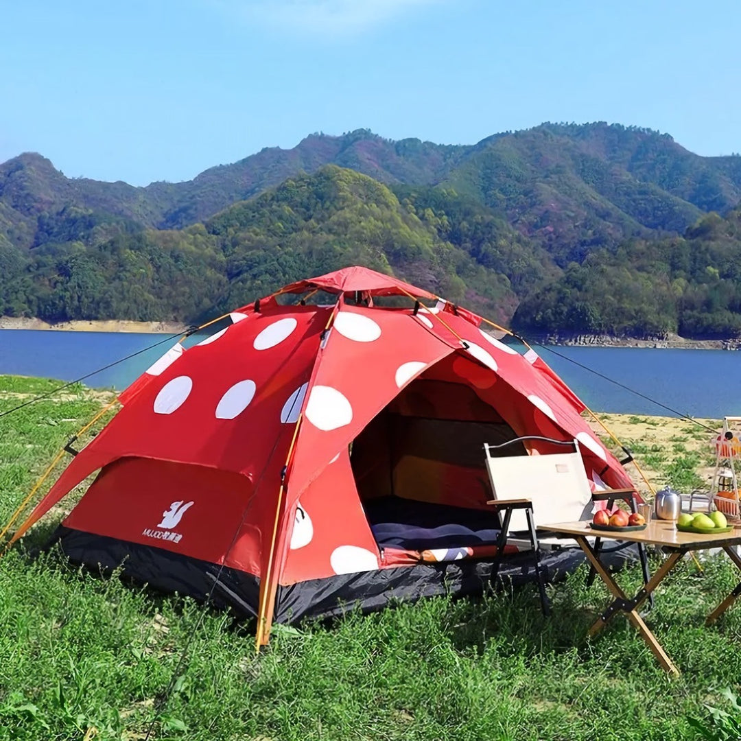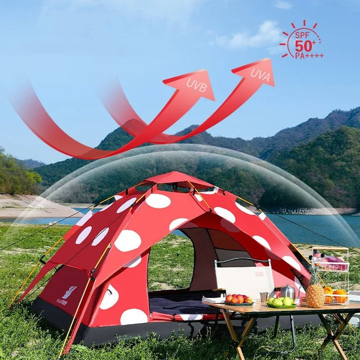 Make your next outdoor adventure unforgettable with the Polka Dot Mushroom Automatic Folding Camping Tent