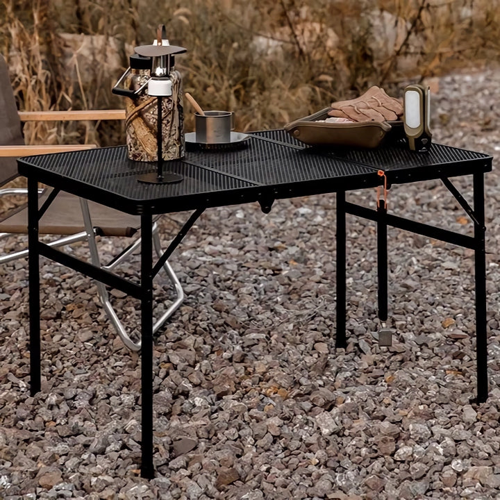 Elevate your outdoor experience with our Portable Adjustable Height Folding Aluminum Table, designed to make your camping, BBQ, and picnic outings more enjoyable and convenient. This sturdy and lightweight table is the ultimate companion for any outdoor enthusiast, offering unmatched versatility and ease of use. Its sleek black finish and tactical design ensure it not only performs well but also looks great in any setting.