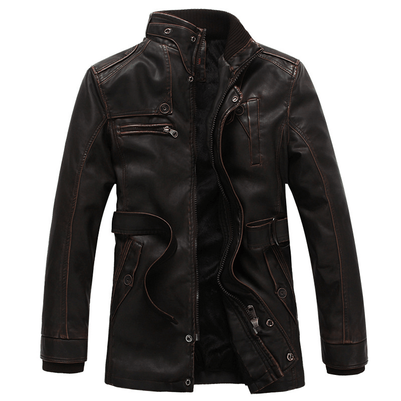 New Men'S Leather Jacket Thickened and Velvet Autumn and Winter Models