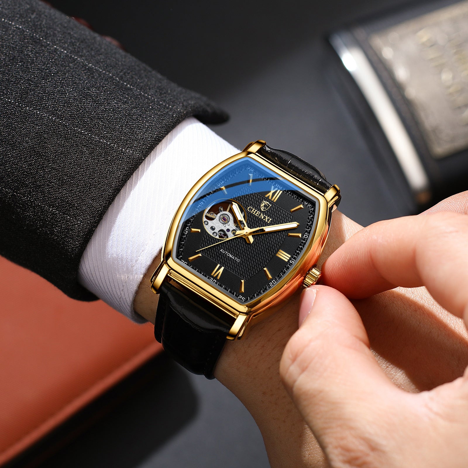 Men's Automatic Fashion Square Let Go Hollow Mechanical Watch