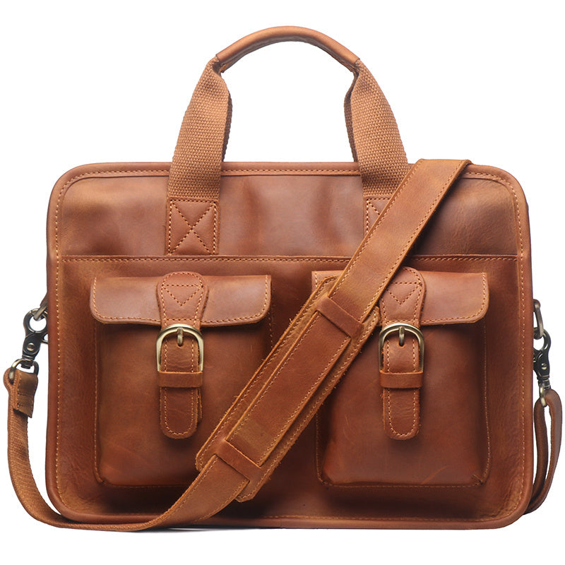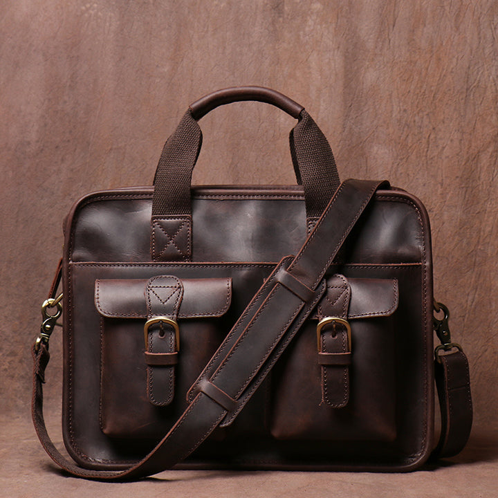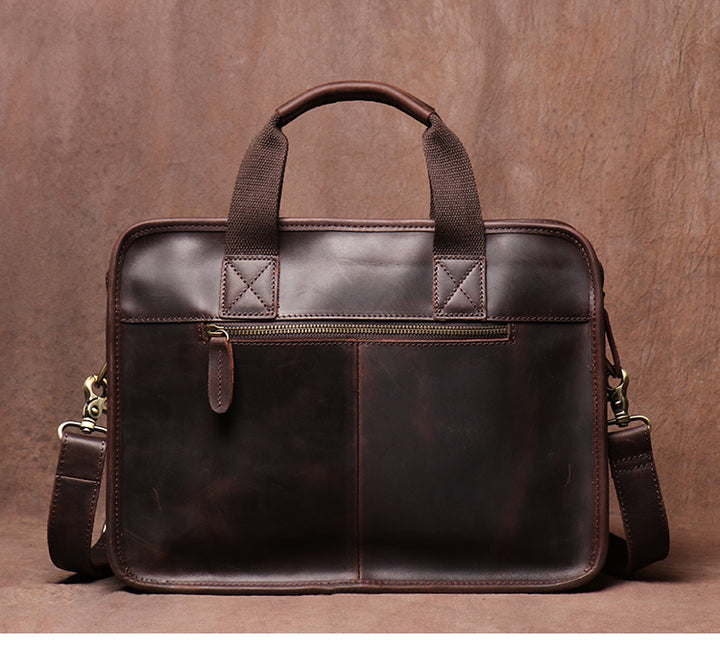 Men's Retro Handmade First Layer Cowhide Portable Briefcase