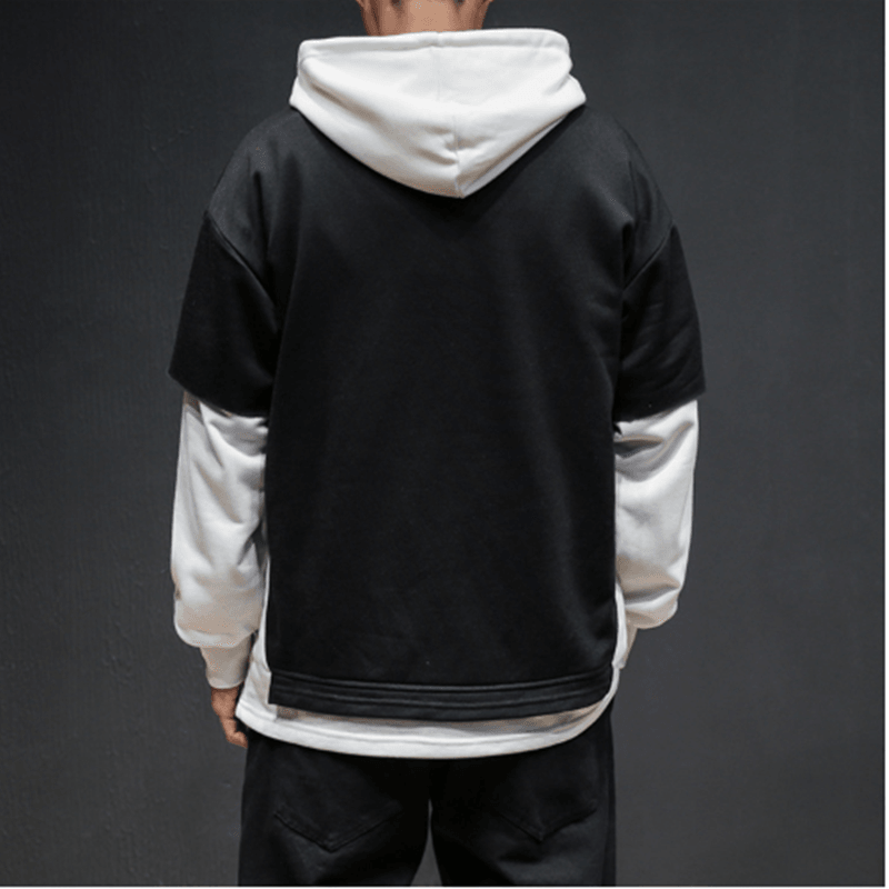 Experience the perfect blend of comfort and style with our Japanese Retro Hip-Hop Style Men's Sweater. Designed as a fake two-piece suit, this leisurely top is the perfect addition to your unique wardrobe. It features a collar-less design, long sleeves, and a hood for extra comfort. The plain pattern combined with hit color style details creates a unique, retro aesthetic.