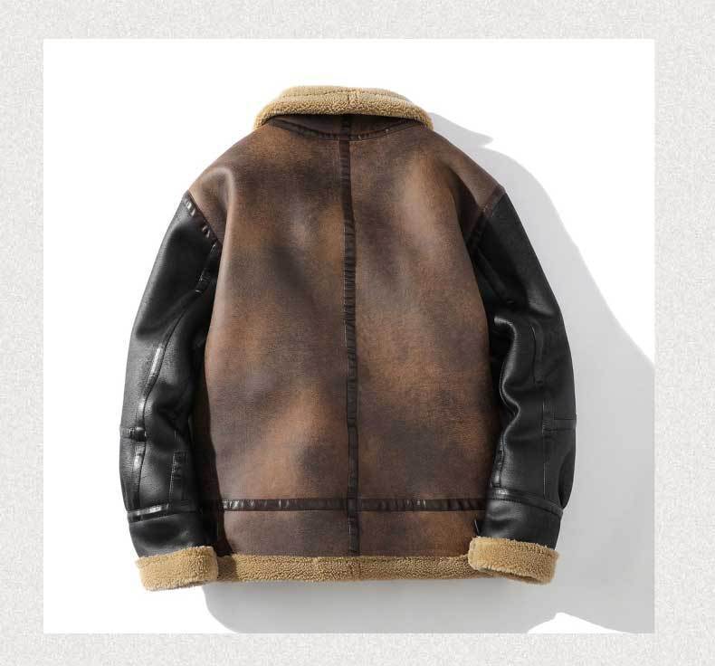 Winter Leather And Fur Jacket Men's Loose Lapels Color Matching Lamb Wool Velvet Padded Thickened Coat