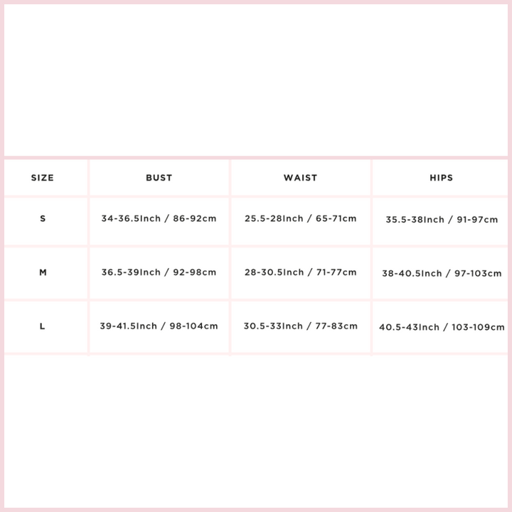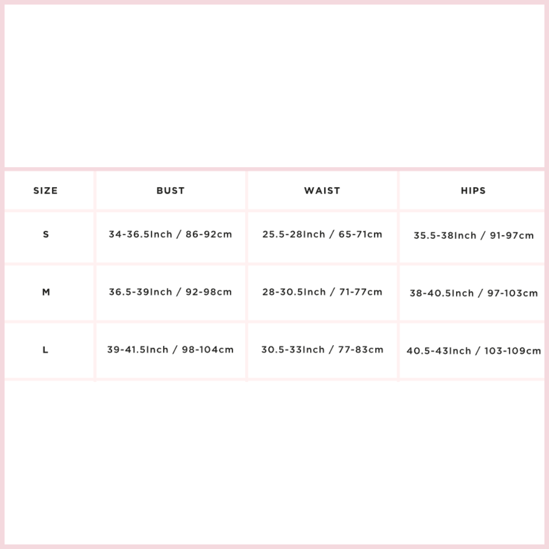 | SIZE | US / CAN | BUST | WAIST | HIPS |