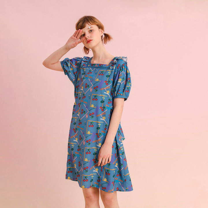 This lightweight, airy dress features delightful puff sleeves and a vibrant fruit print, making it a standout choice for warm weather outings. Whether you're attending a garden party or enjoying a weekend brunch, this dress ensures you look effortlessly stylish.Product Features