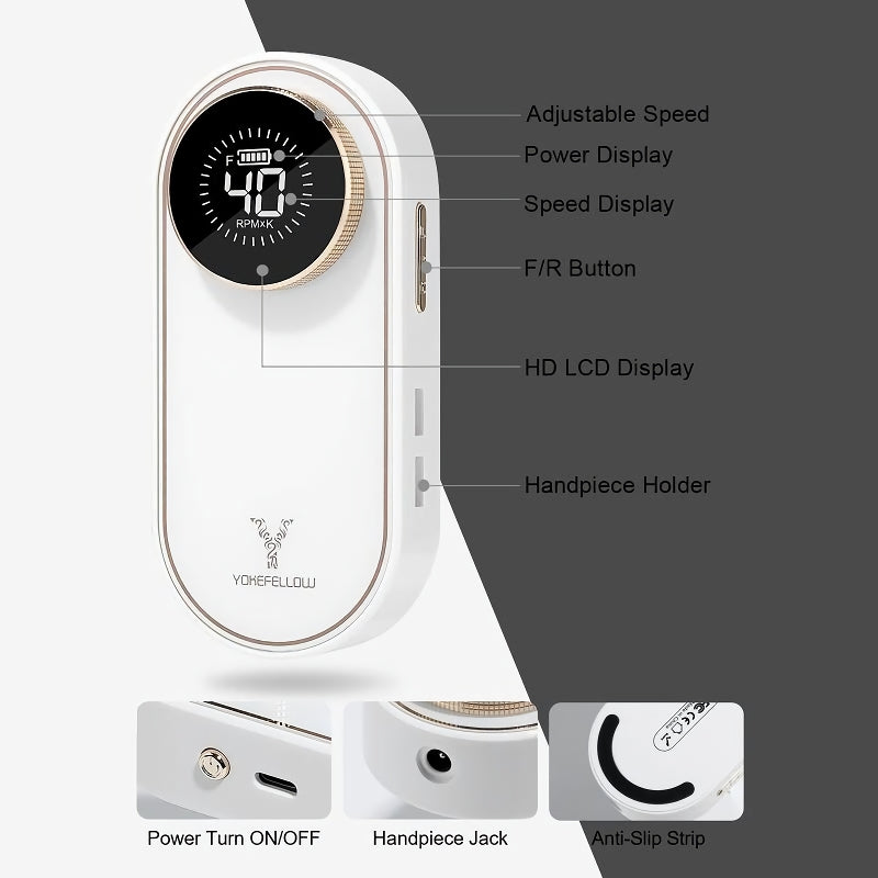 Introducing your new secret weapon in nail care and design, the Portable Electric Nail Drill Machine 40000RPM with HD Display. Crafted for professionals and beauty enthusiasts alike, this machine combines power, precision, and portability to transform your nail care routine. Say goodbye to cumbersome cords and hello to freedom, with a device designed to keep up with your creative flow, from the comfort of your home to the buzz of the salon floor.Key Features That Set Us Apart