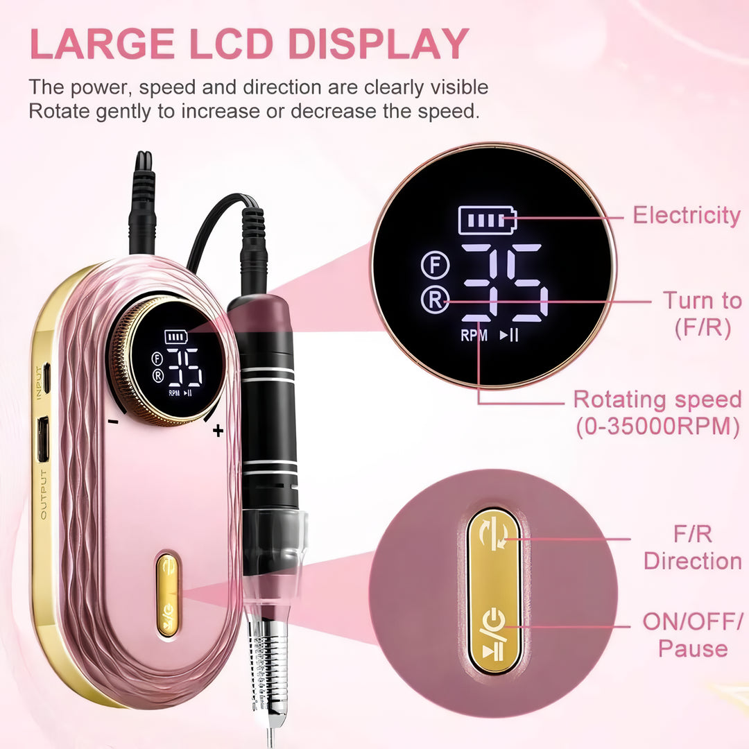 - HD Smart LCD Screen: The smart LCD screen displays speed, direction, and remaining power, providing you with all the information you need for a flawless manicure.