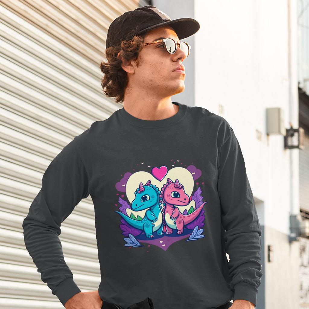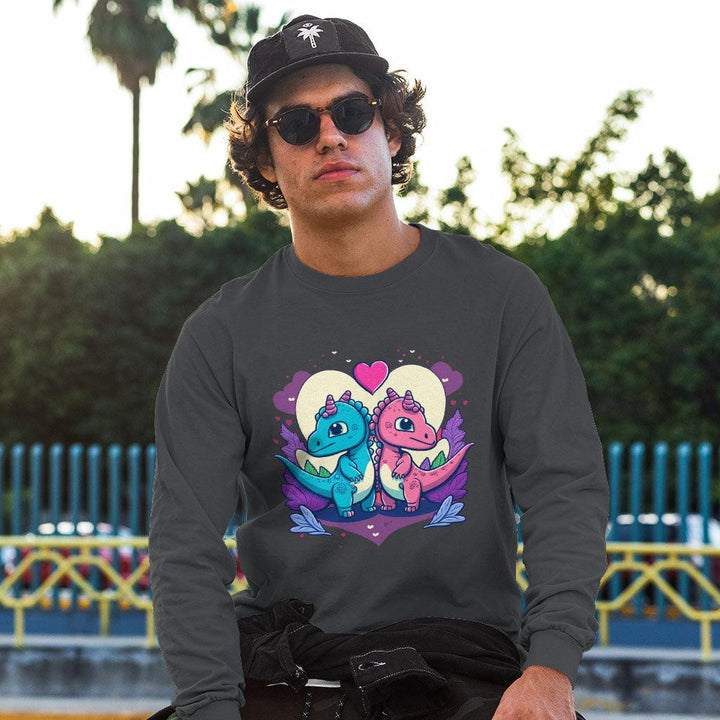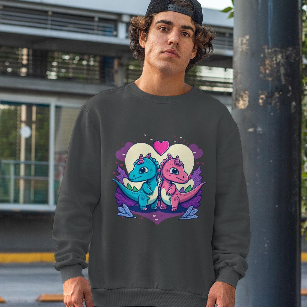 Dinosaur Print Sweatshirt - Love Graphic Crewneck Sweatshirt - Colorful Sweatshirt