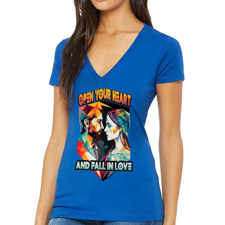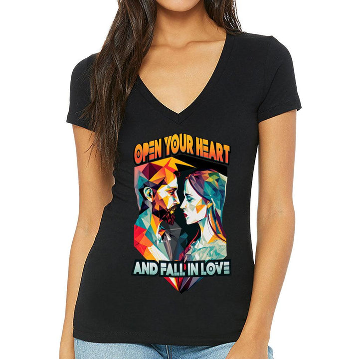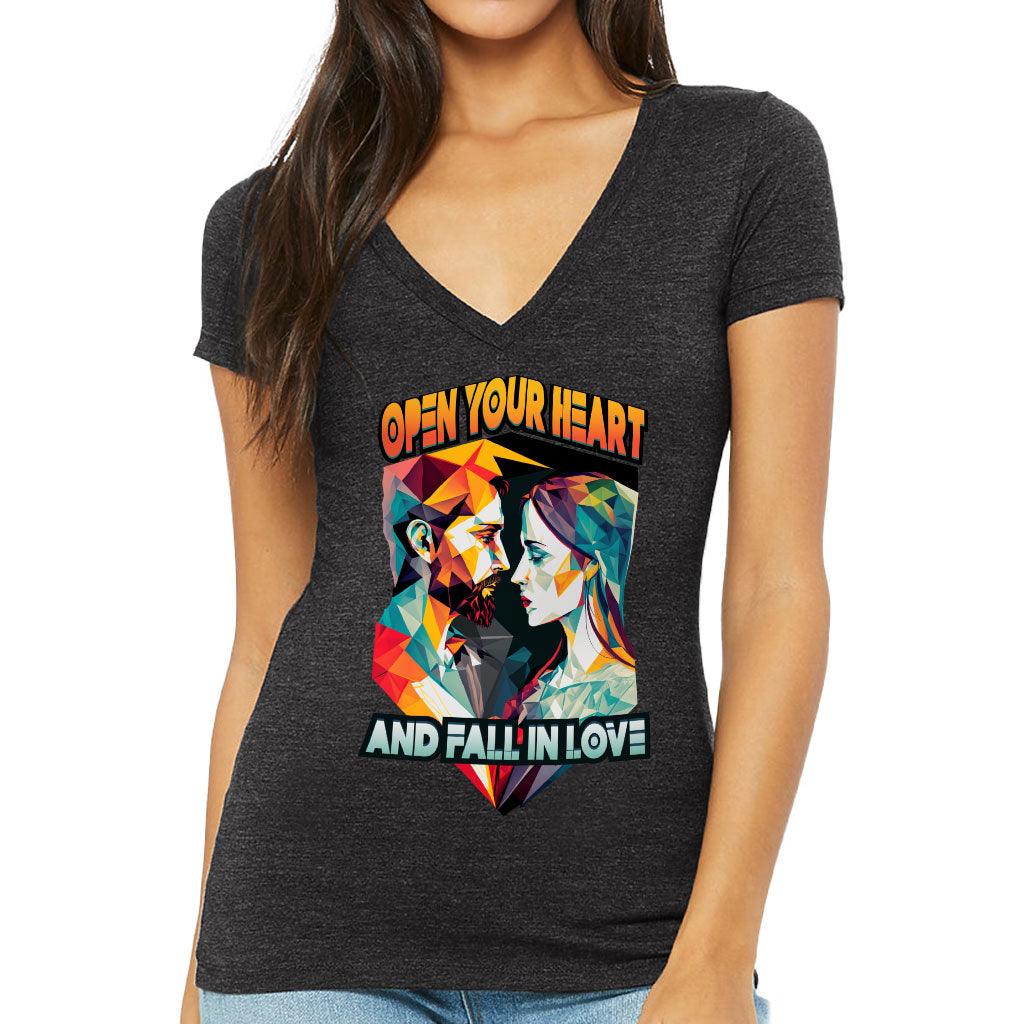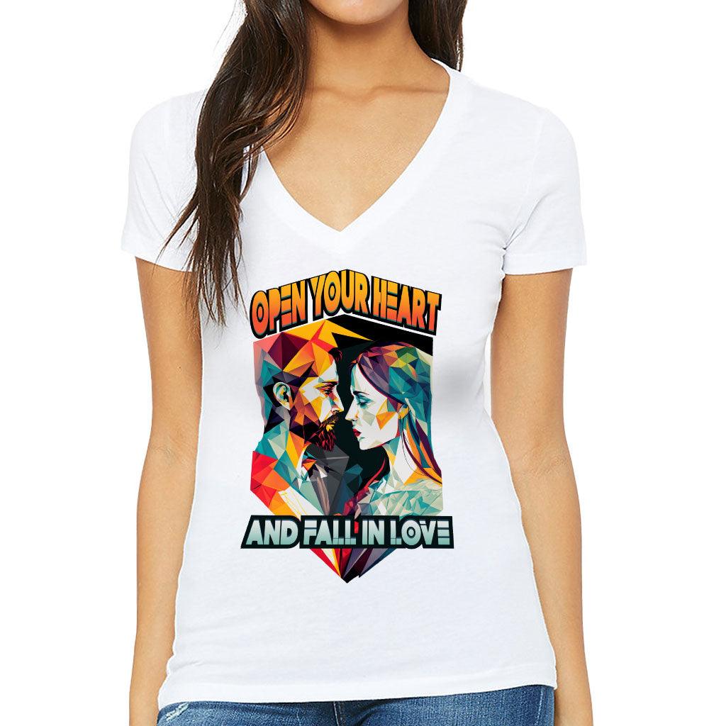Fall in Love Women's V-Neck T-Shirt - Unique V-Neck Tee - Geometric T-Shirt