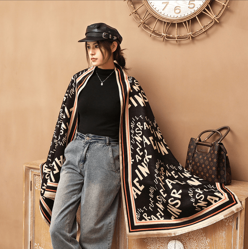 Fashionable Women'S Letter Jacquard Warm Scarf