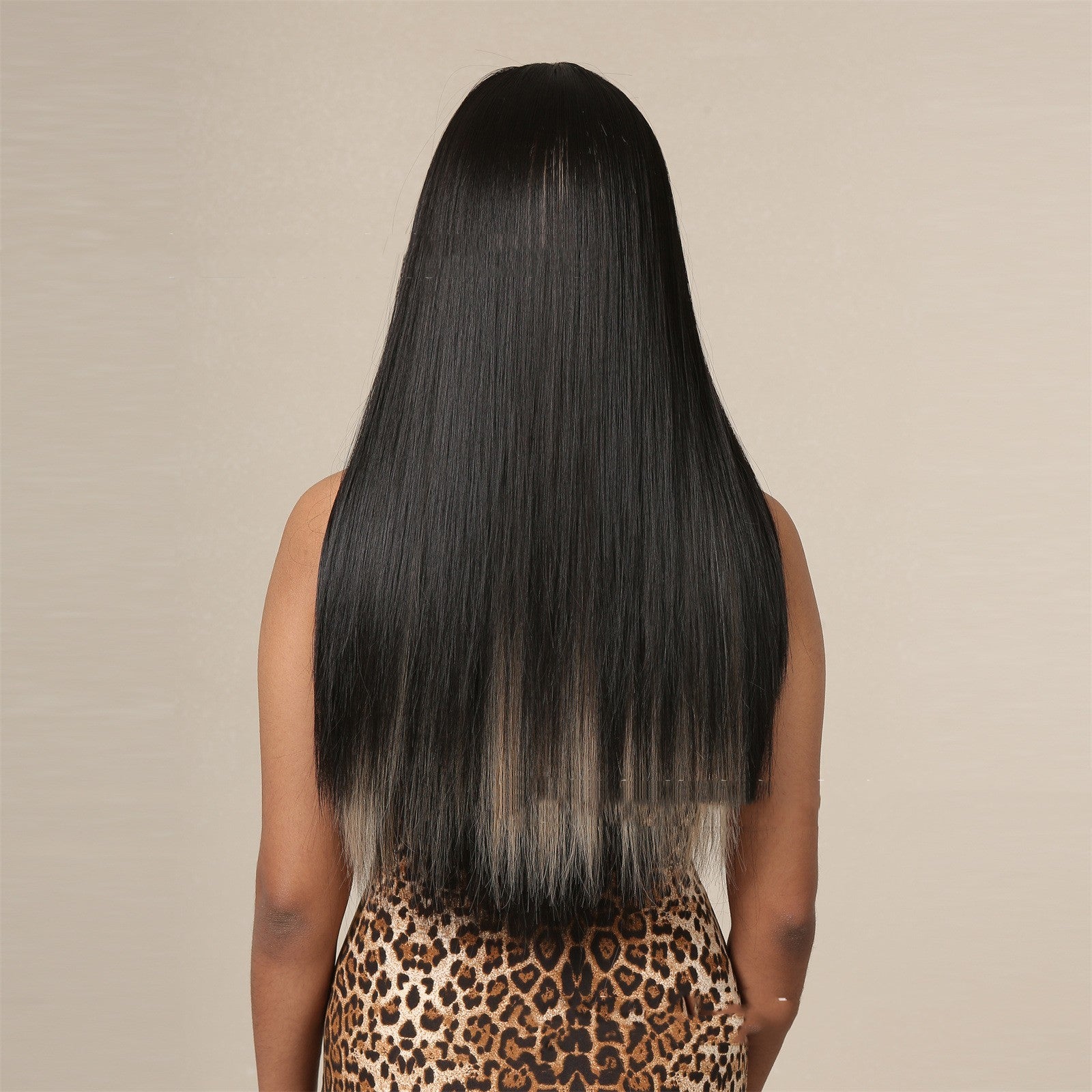 Wig Women's Long Hair Long Straight Hair Natural Highlight