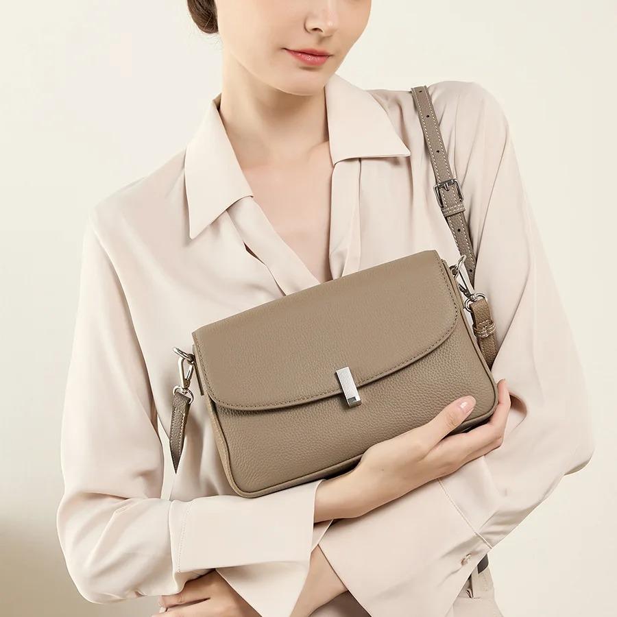 Step up your style game with this luxurious Genuine Leather Women’s Shoulder Bag, crafted from premium cowhide for a sophisticated yet minimalistic look. Soft to the touch and expertly designed, this bag is the perfect blend of elegance and functionality. Whether you're heading to work, a casual outing, or an evening event, this versatile crossbody bag will complement any outfit while providing ample space for your daily essentials. The high-quality cowhide leather not only exudes luxury but is also durable enough for everyday use. With its soft structure and a clean, square shape, this bag offers a modern aesthetic that effortlessly transitions from day to night. The adjustable strap allows you to wear it comfortably as a shoulder or crossbody bag, making it a versatile choice for any occasion. Inside, the spacious interior includes a convenient cell phone pocket and an additional zippered pocket to keep your belongings organized and secure.Features of Our Genuine Leather Shoulder Bag