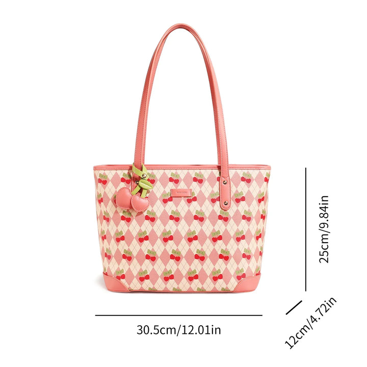 What sets this Cherry Print Tote Bag apart is its combination of playful design and practicality. The whimsical cherry print brings a fresh and fun vibe to your outfit, while the bag's large capacity makes it perfect for everyday use. Whether you're using it as a grocery bag, a work tote, or a fashion accessory, this bag meets all your needs with style.