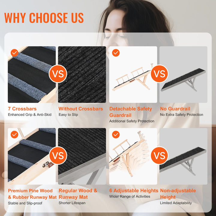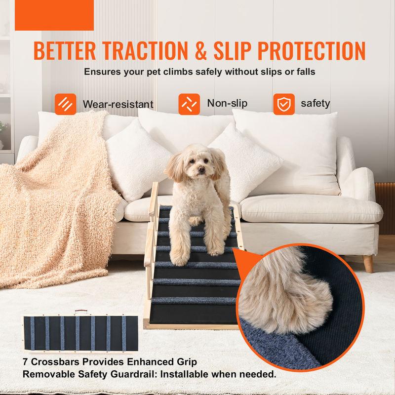 • High-Traction & Non-Slip Surface: The ramp features a rubberized surface with grooves and 7 crossbars for extra grip, preventing pets from slipping while climbing.