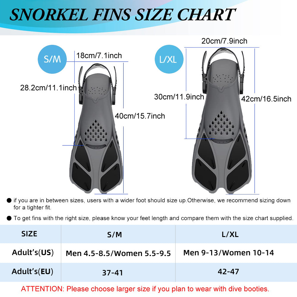 Enhance your underwater experience with our Adjustable Open Heel Snorkel Fins! Engineered with precision and designed for comfort, these swim flippers are your perfect companion for exploring the depths of the ocean.Product Features