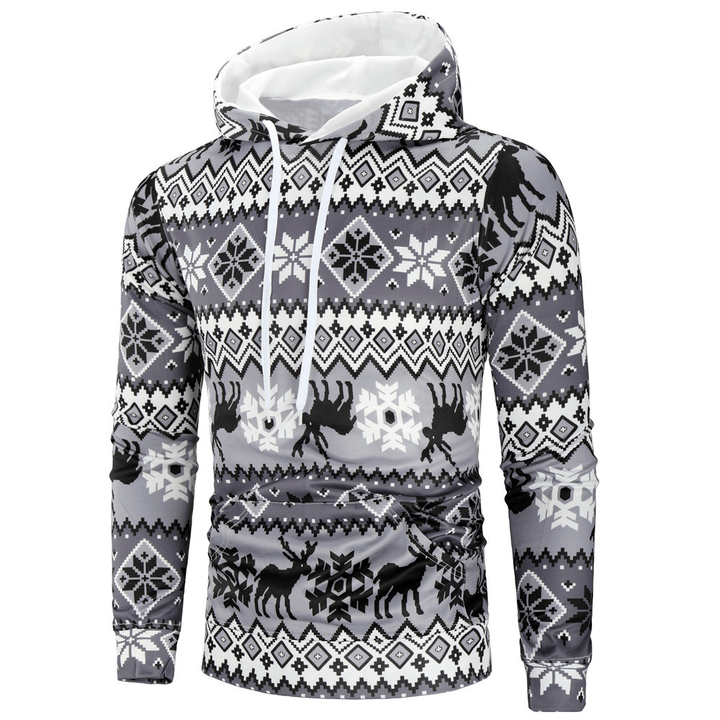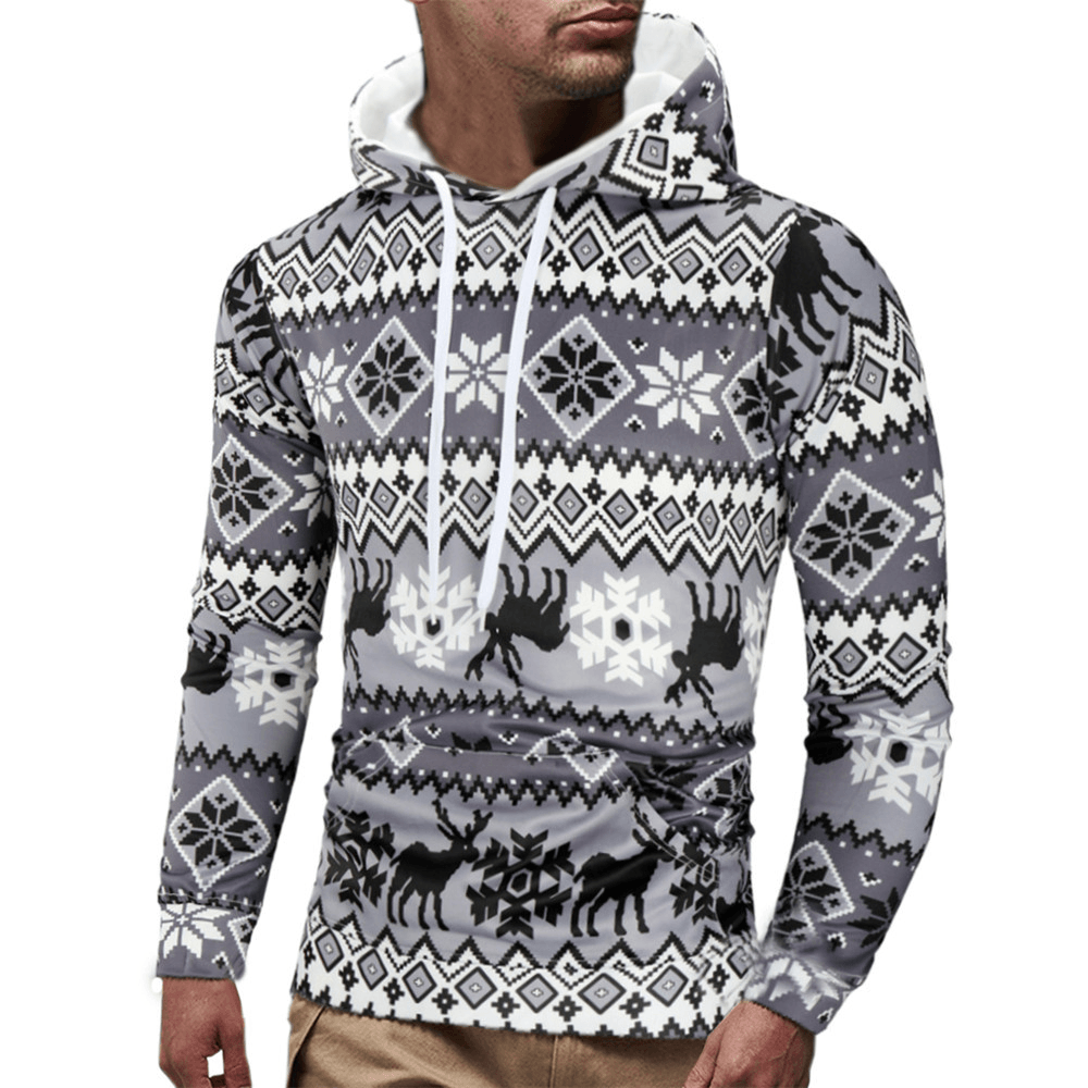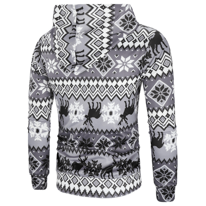 Christmas Elk Print Men'S Hooded Sweatshirt
