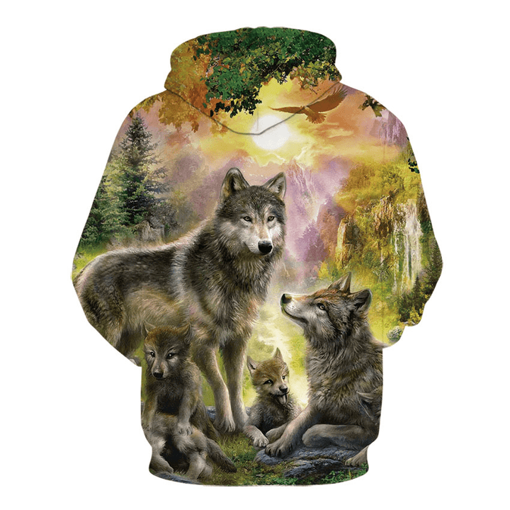Color Wolf Digital 3D Printed Hooded Sweatshirt