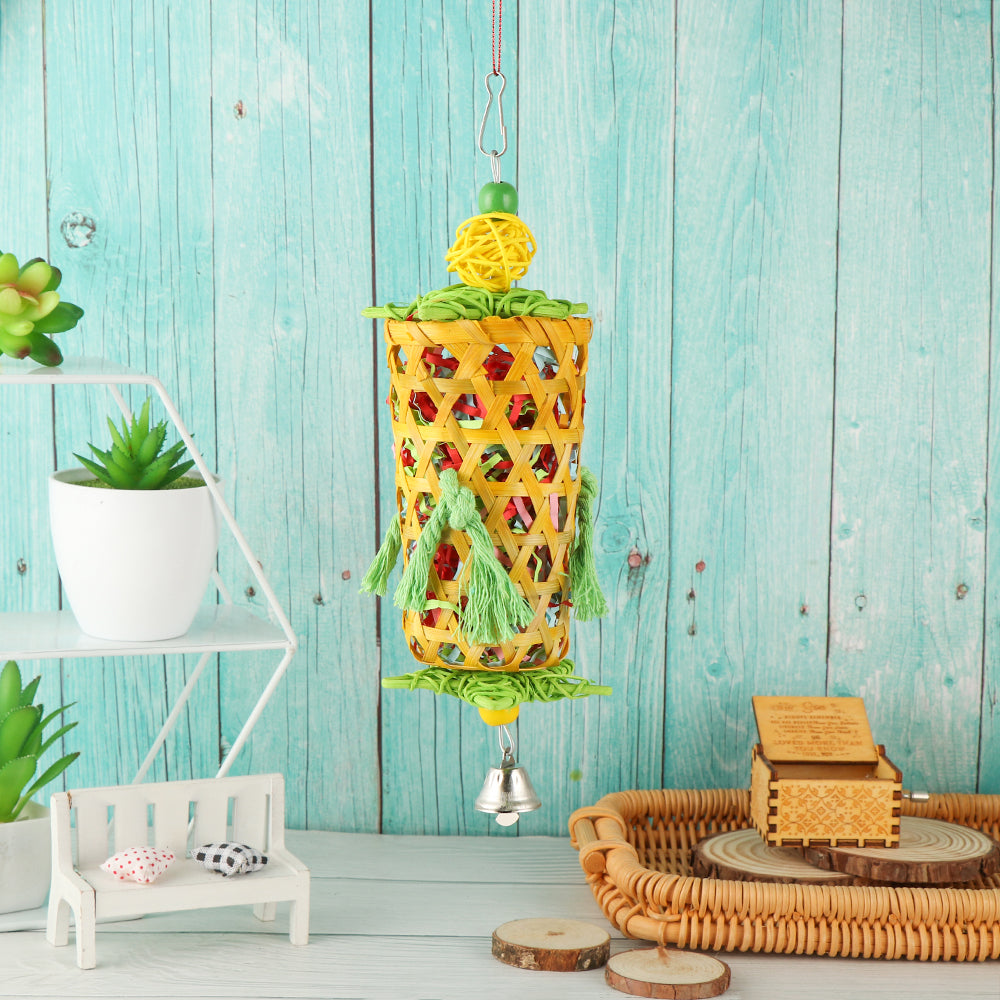 Colorful Bamboo Rattan Bird Chew Toy with Foraging Shredder for Parrots