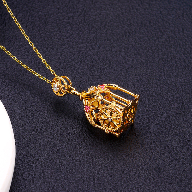 Fairy Tale Pumpkin Carriage Three-dimensional Design Can The Bird Cage Necklace