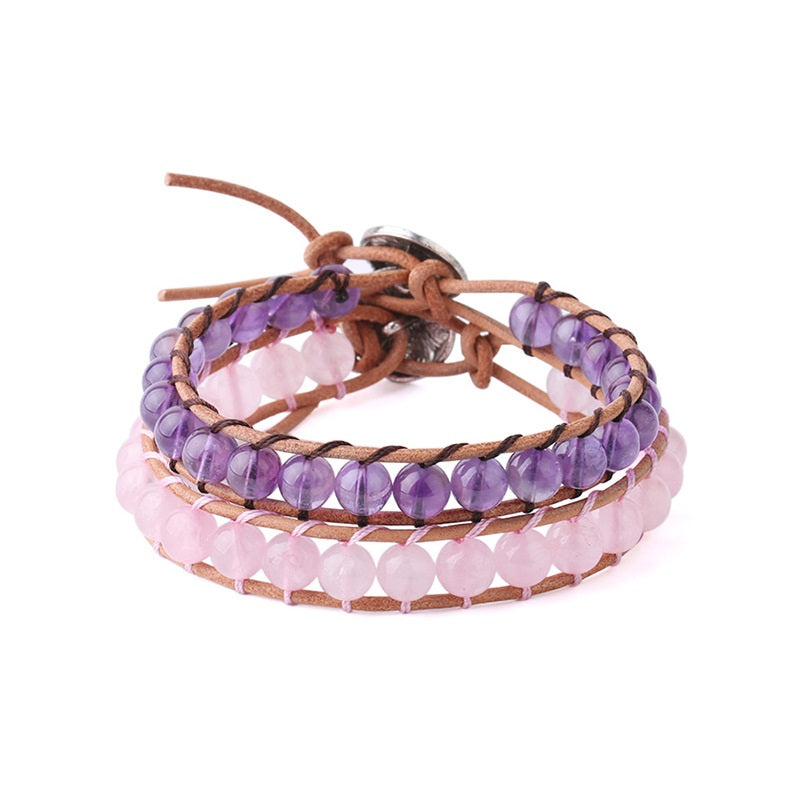 Fashionable Cowhide Rope Natural Crystal Beaded Jewelry