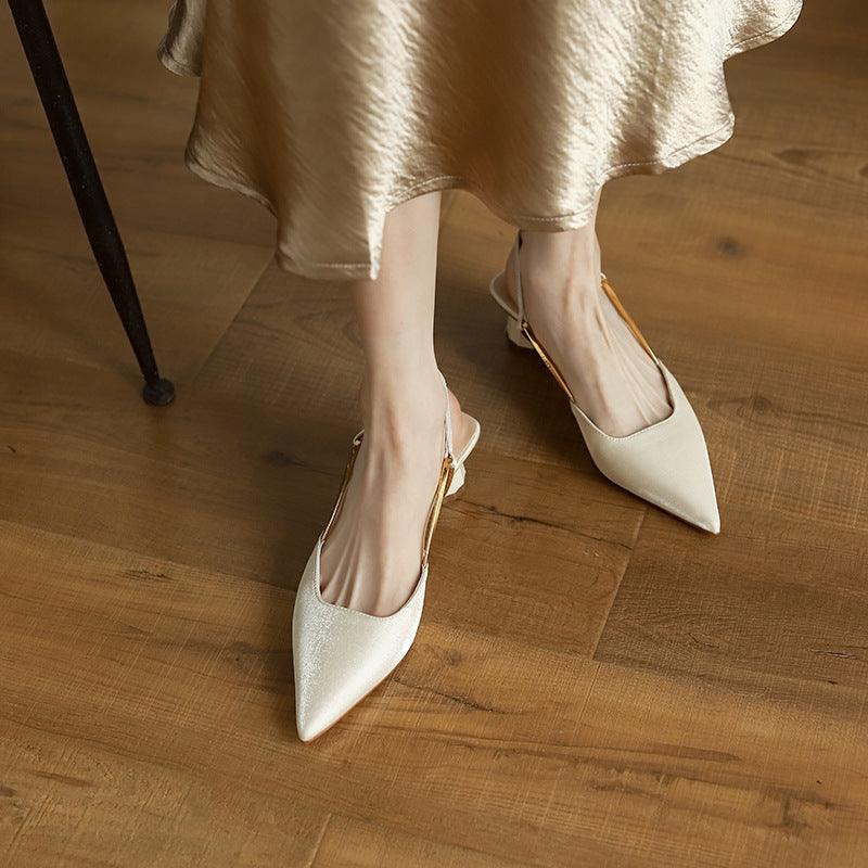 French Satin Temperament Low Heel Toe Sandals - Vintage Elegance Redefined"