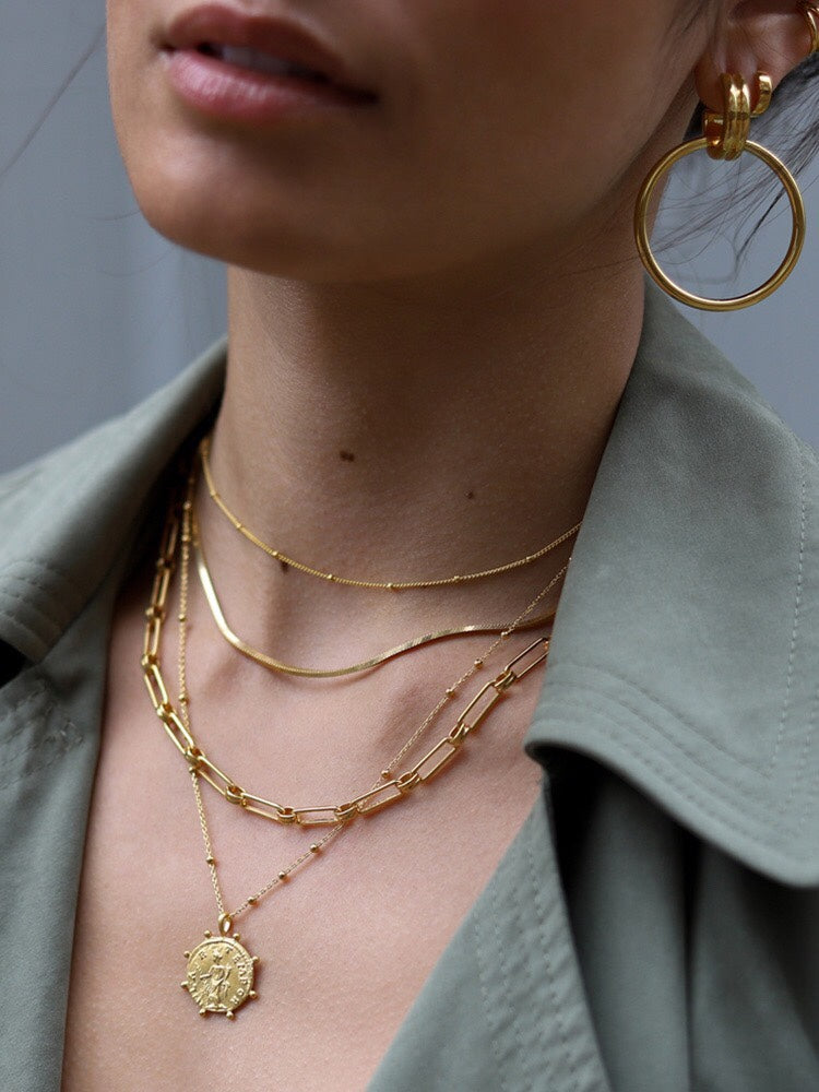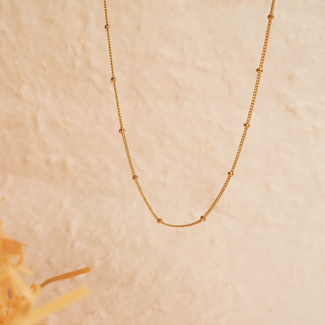 Gold Beaded Simple Fashion Vintage Necklace Sterling Silver Plating