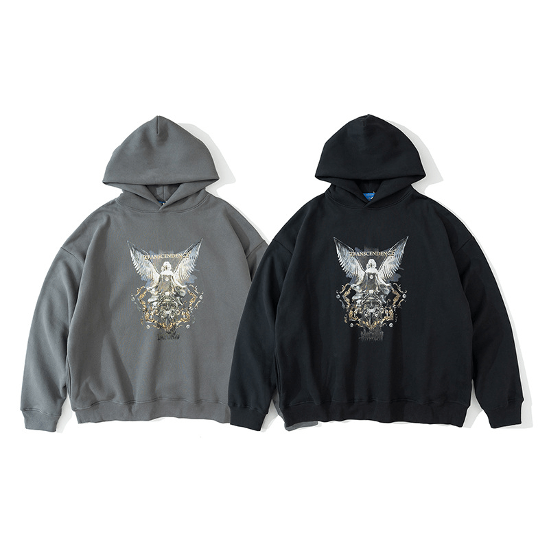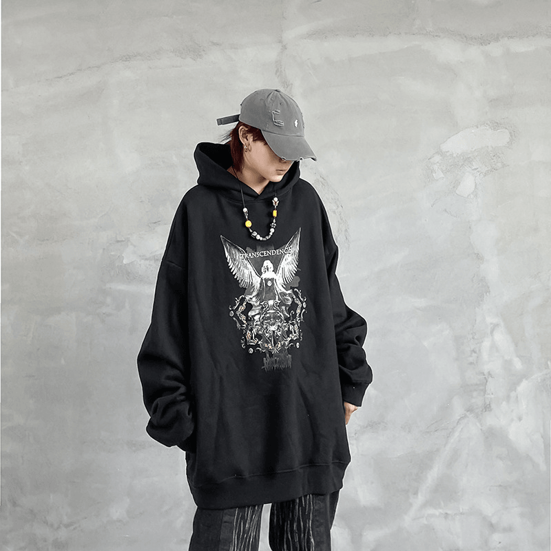 Hip Hop Angel Print Hooded Pullover Sweatshirt