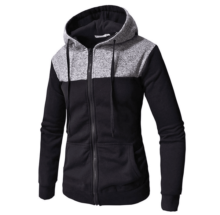 Hooded Color Block Casual Sweater Men'S Jacket Cardigan