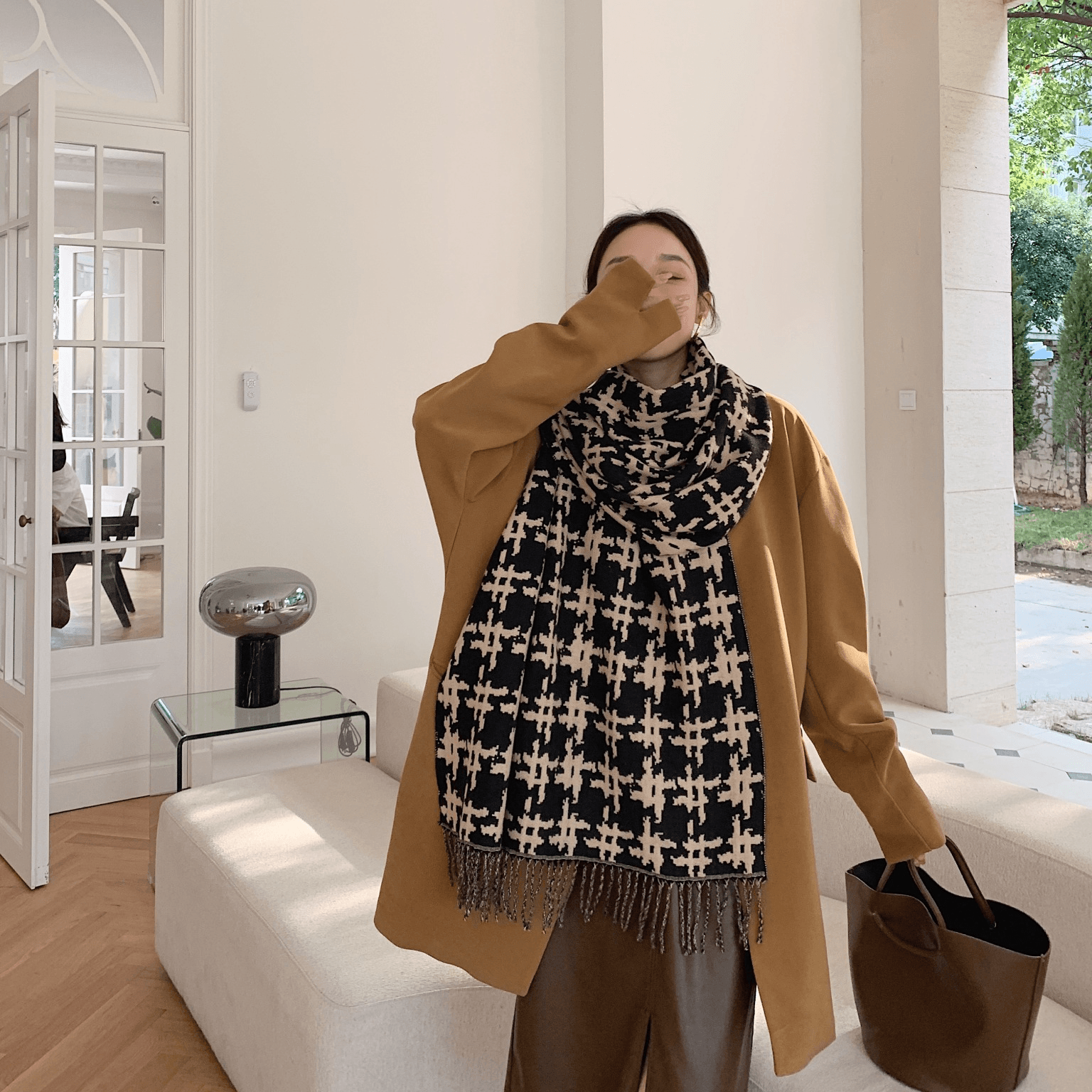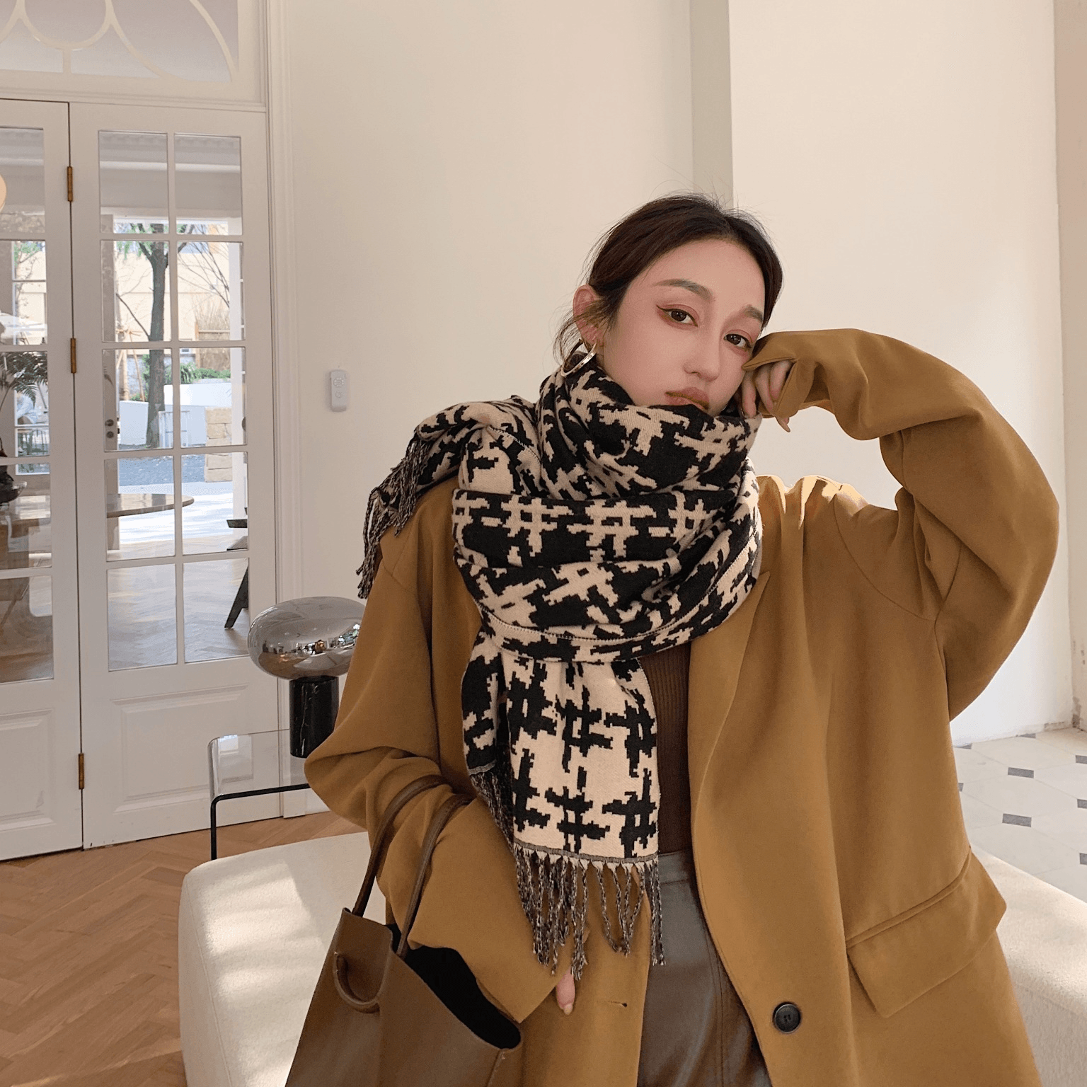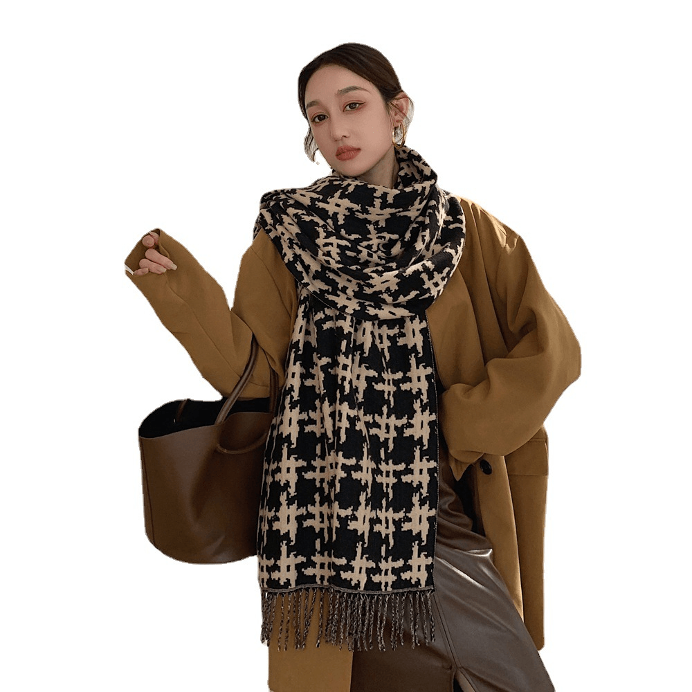 Long Fringed Thick Houndstooth Large Shawl Women 2021 Long Temperament Warmth Scarf