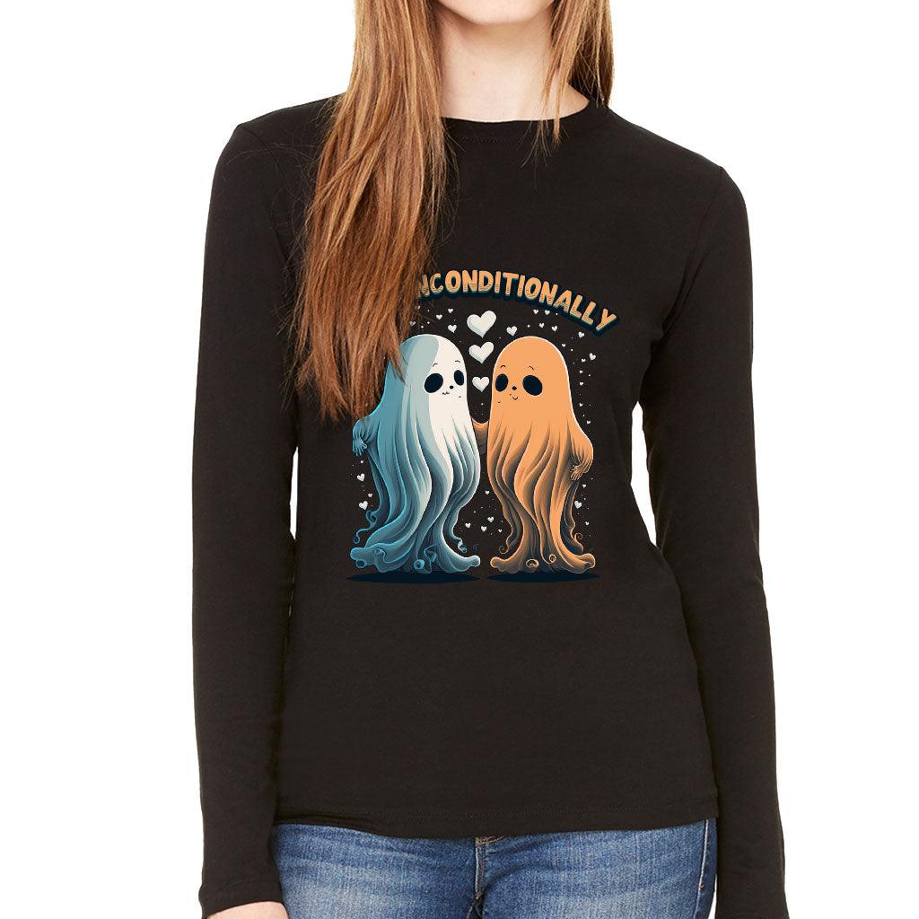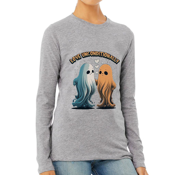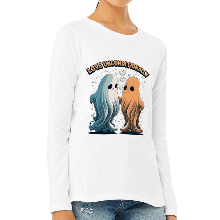 Love Unconditionally Women's Long Sleeve T-Shirt - Ghost Print Long Sleeve Tee - Graphic T-Shirt