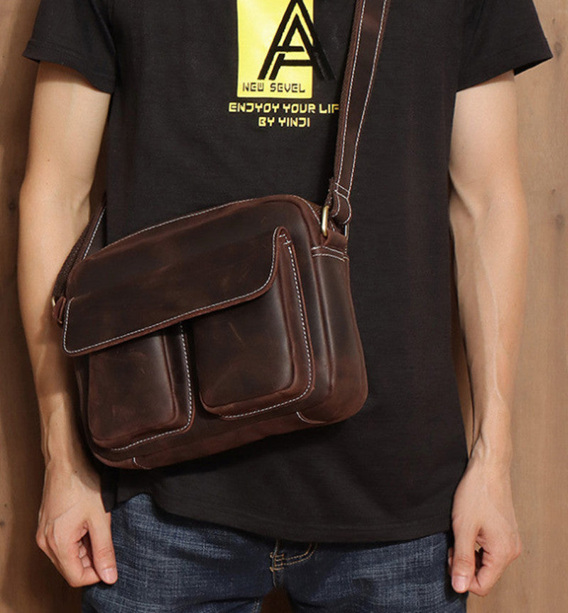 Men's Shoulder Bag Head Layer Cowhide Casual Personality Messenger Bag