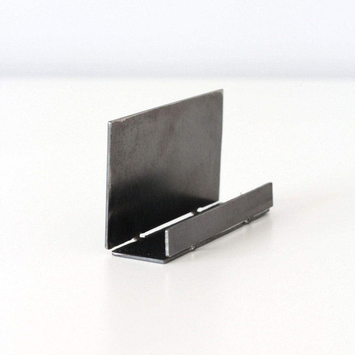 The business card holder is plasma-cut out of 16 gauge steel in Tennessee, United States of America, for a durable yet lightweight piece.