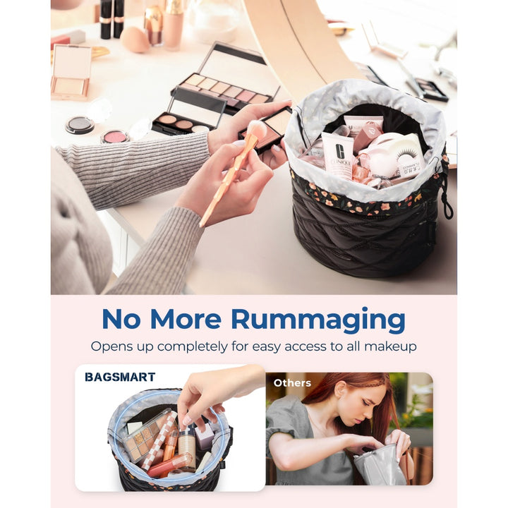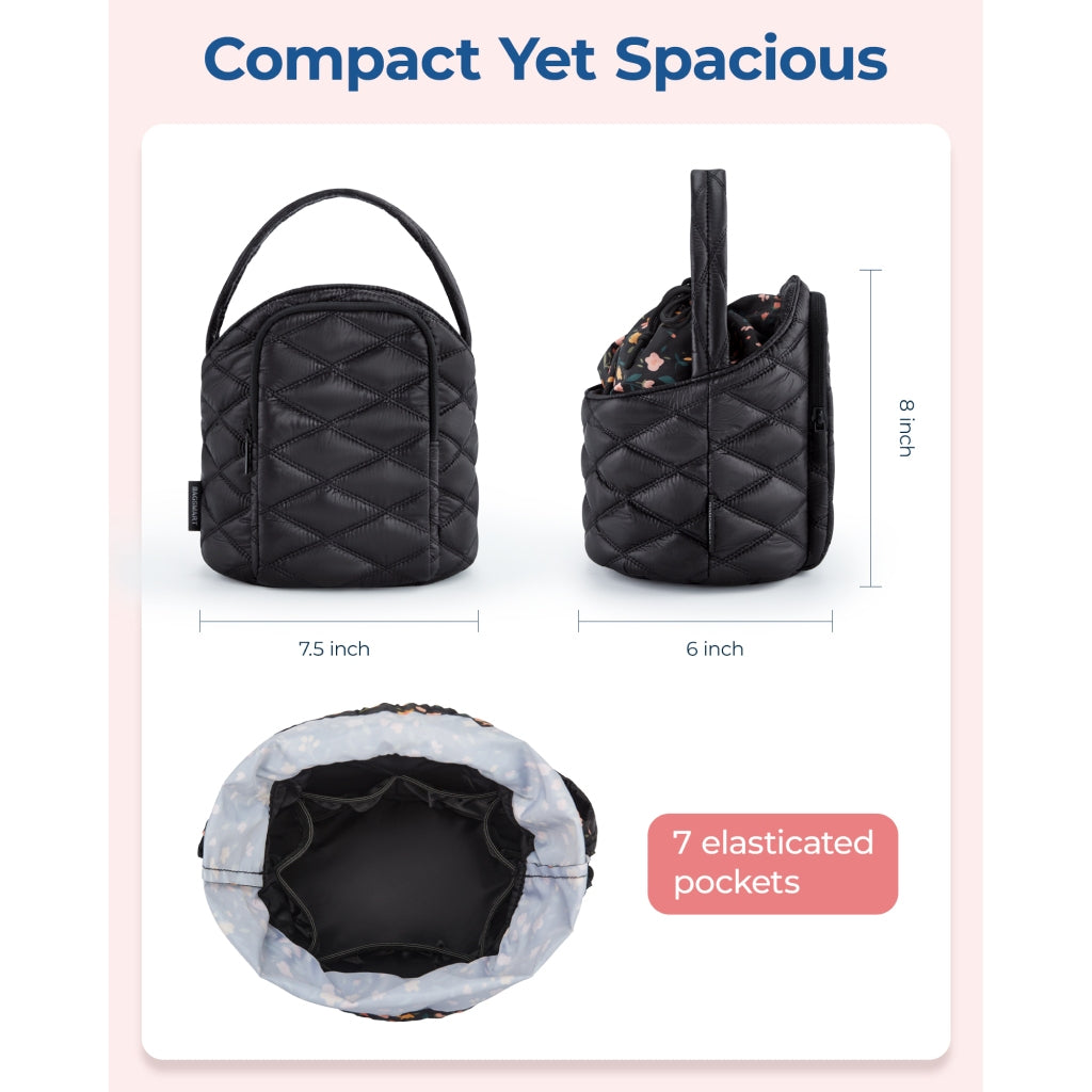 Designed with sturdy handles for easy portability, our cosmetic bag is perfect for travel, the gym, or everyday use. The barrel design prevents items from slipping out during packing, ensuring maximum protection for your makeup essentials. Carry your beauty must-haves with ease and convenience, knowing everything is securely stored and ready for use.