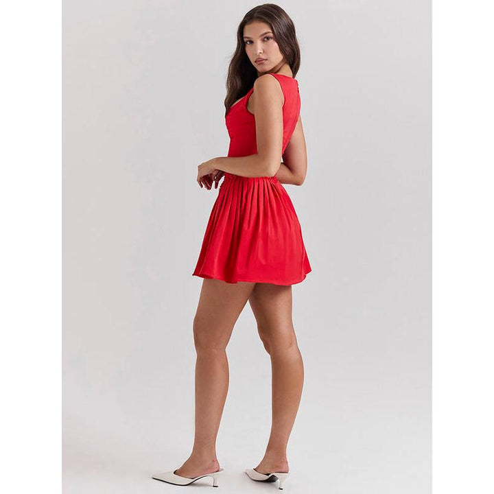 Red Sleeveless Mini Dress with Square Collar and Backless Design