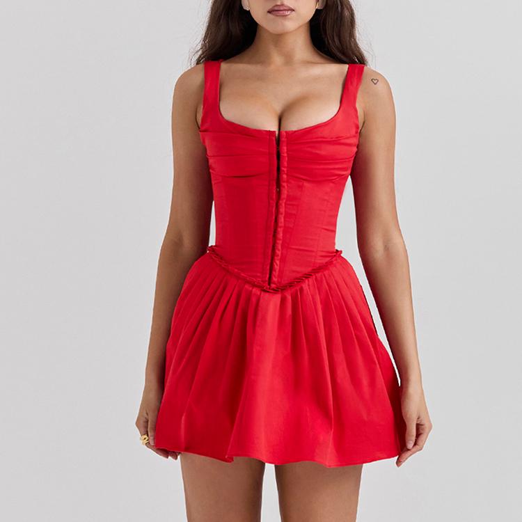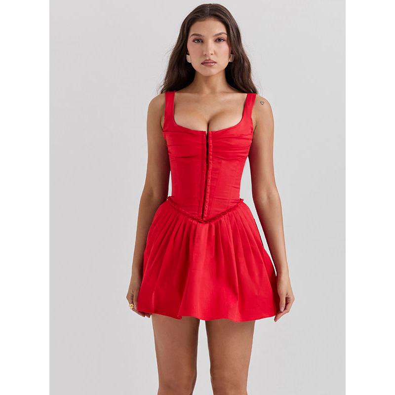 Step into the spotlight with our stunning Red Sleeveless Mini Dress, designed for the confident and stylish woman. This captivating dress features a square collar and backless design that exudes elegance and allure. Perfect for spring and summer, this sexy A-line dress is your go-to choice for club parties, nights out, or any occasion where you want to make a statement.