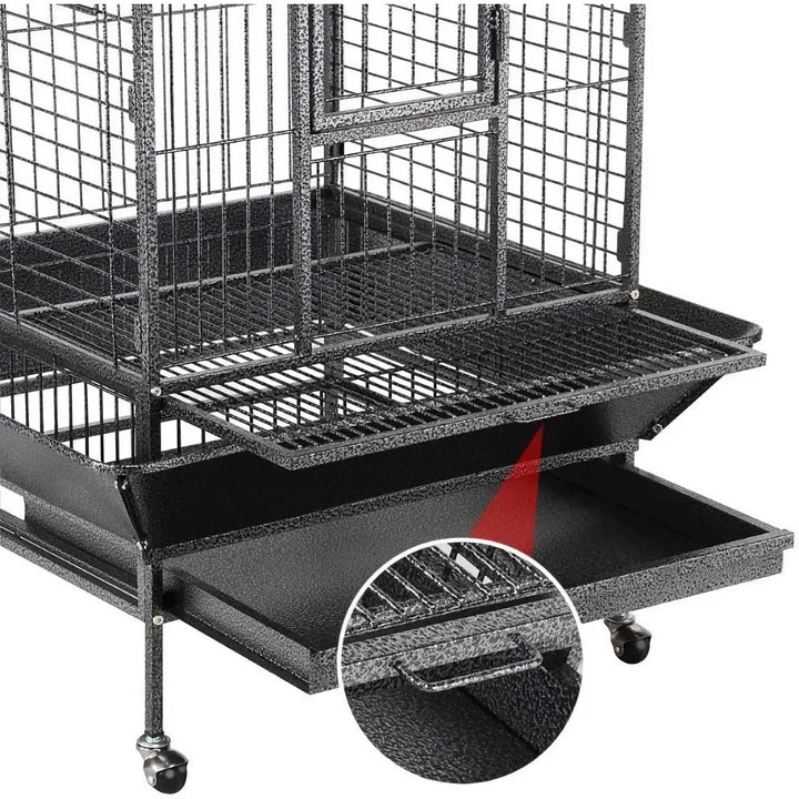 Give your feathered friends the luxury they deserve with our spacious and stylish 63'' Rolling Open-Top Bird Cage. Its combination of functionality and durability ensures a safe, comfortable, and engaging environment for your parrots or conures. Don’t wait—upgrade your bird's living space and experience the convenience and joy of this top-notch bird cage. Order now and provide the perfect home for your avian companions!